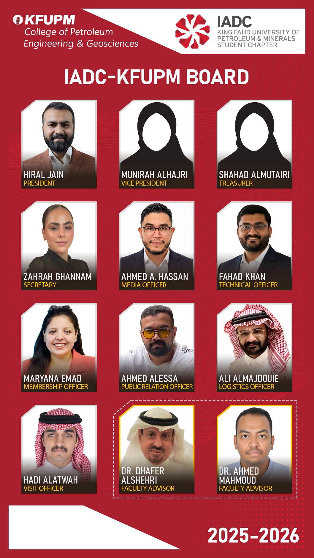 The IADC KFUPM Student Chapter, based at King Fahd University of Petroleum and Minerals (KFUPM), is the first IADC student chapter established in the Middle East. Since its founding in 2021, the chapter has actively contributed to building a strong bridge between petroleum engineering students and the global drilling industry.