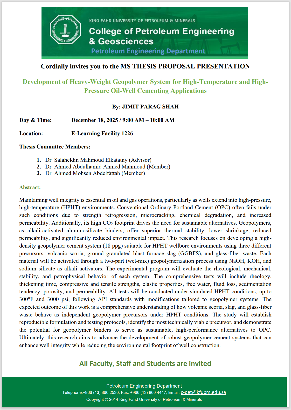 Committee: Dr. Ardiansyah Koeshidayatullah (Advisor) Dr. Basem Zoheir (Member) Dr. Hamed Gamaleldien (External Member) Join Zoom Meeting https://kfupm.zoom.us/j/97582371647?pwd=C2XBk5DbH5Olp4ca5F0vrIasuGFw0a.1