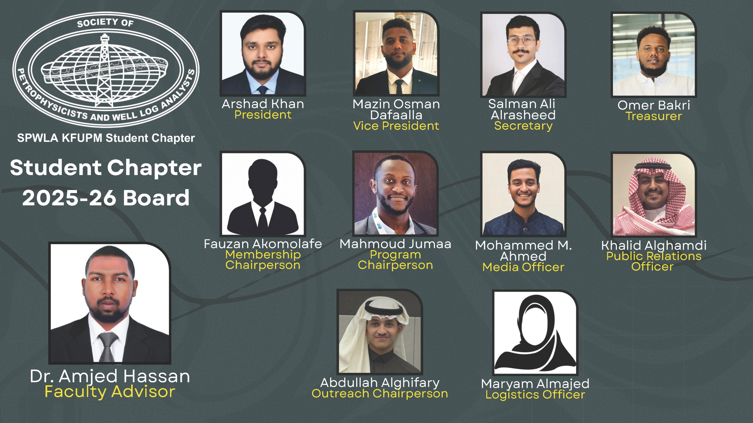 Founded in 2017, The SPWLA KFUPM Student Chapter formed with only 10 members and has been increasing rapidly ever since. The chapter seeks to create a proper medium for the students to conduct various activities for knowledge sharing, training, and development.